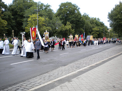 Lois – in the catholic church, the second Friday after the Corpus Christi Day is the Feast of the Sacred Heart. This is what the procession was for. The procession started in Jezyce (part of Poznan) and they walked to the Adam Mickiewicz Square because there used to be a Holy Sacred Heart Monument there. That monument was destroyed by the Germans in 1939.