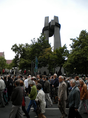 As we crossed the grounds, we stopped to view an exhibition about the 1956 Uprising in Poznan.  There were photos and the history of events were told in Polish and English.  So as we came around to the front of the castle and saw a huge parade coming down the street, my natural conclusion was to assue that this parade was in commemoration of the 1956 Uprising.  I don’t know if that’s really the case. Maybe someone can clarify this for me. (This isn’t the case; see Kasia’s comment for the proper explanation.)
