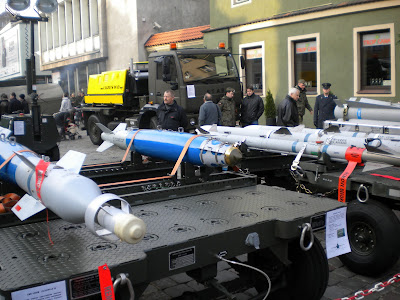 Poznan celebrated Poland’s 5 years of flying F-16s today.  We left our apartment near Lake Malta a little before noon and headed to the Stary Rynek (old square) on foot; we thought it would give us plenty of time to walk the two miles before the six ship fly-by scheduled for 1:15.  It was 49 degrees when we headed out and we joked about how we were dressed – me with a heavy sweater, Ed wearing a sweatshirt. After all, it was supposed to get up to 54 today!