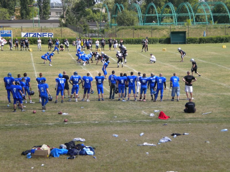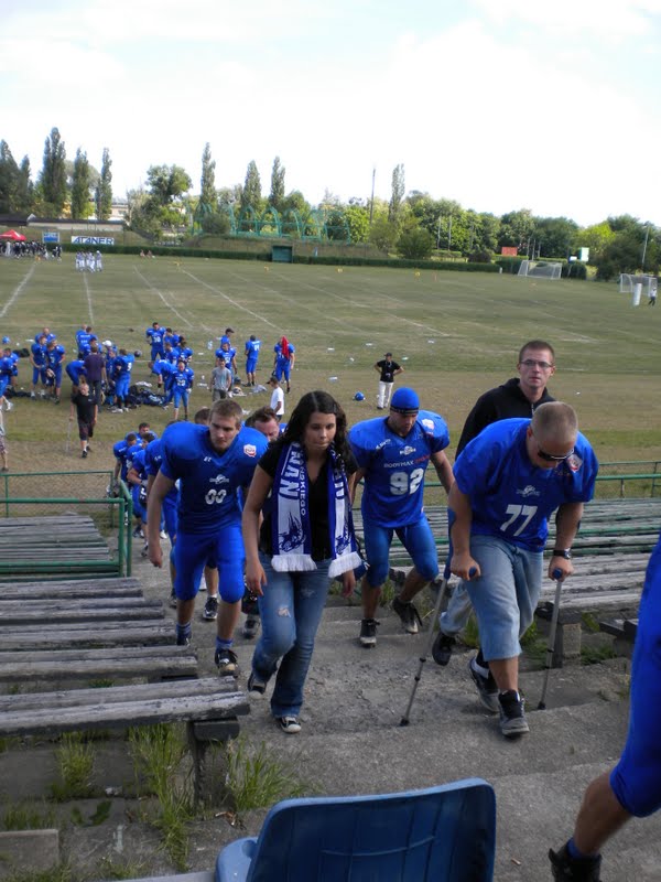 Several towns in Poland have semi-pro teams playing American football. Last Saturday, we watched the Poznan Kozły (billy goats) take on visitors from Lodz. The play was a little slower than professional or college teams stateside, so I found it easier to follow the game. Poznan won in a shutout.