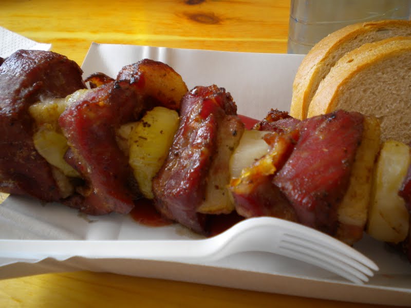 I tried the kabob. I thought it had slices of potato in between the meat, but it was actually a slice of onion and a slice of bacon. The meat was ham-like.