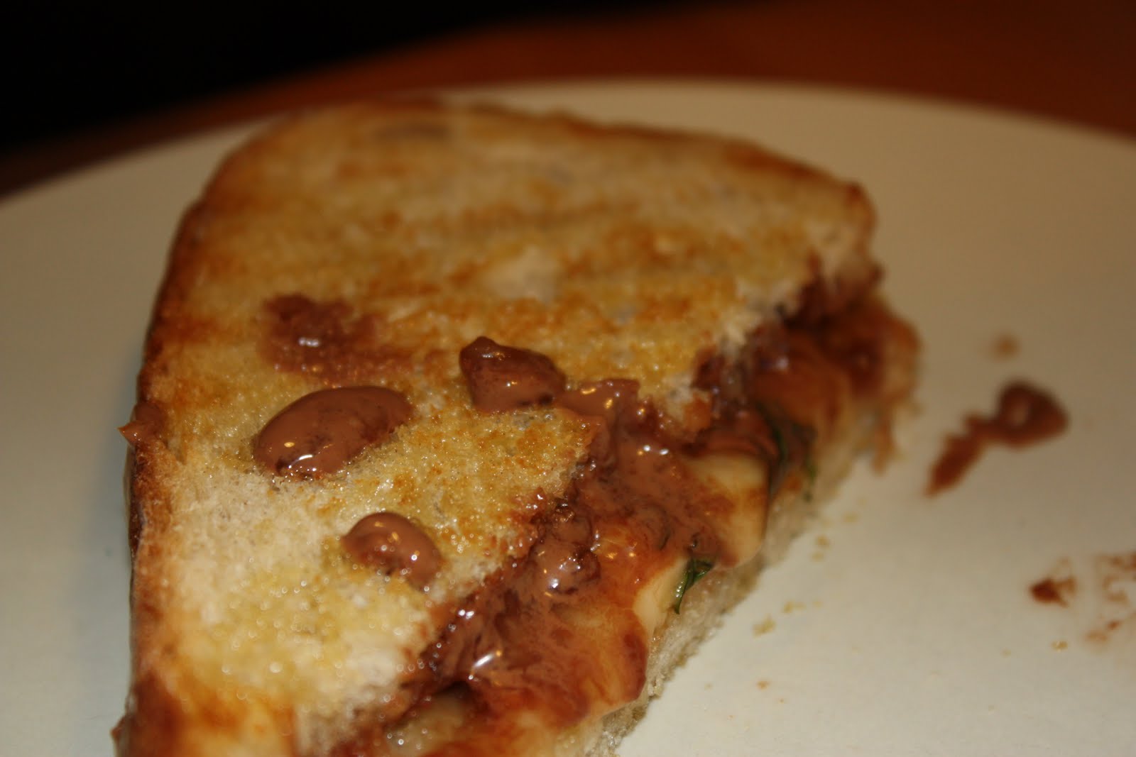 I was just thinking… savory (brie) and sweet (choc). My mom always makes sandwiches with Dutch Gouda cheese and strawberry or apricot jam which I like, so I think I would like your combo too :o)