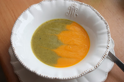 | Broccoli soup with carrot red bell pepper soup |