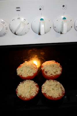 - Spread cheese mixture over the top of tomatoes and broil until browned