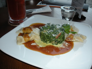 With today’s hot beer, we tried meat filled pierogi served with creamed spinach and mushrooms (they’re big on mushrooms here). We split an order; so surely, that is not too many points. Not to worry, this is vacation, and we must have walked at least 3 miles after getting on the wrong train.