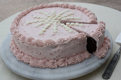 wow, beautifully decorated cake! i really will have to try this cake with strawberry frosting next time.