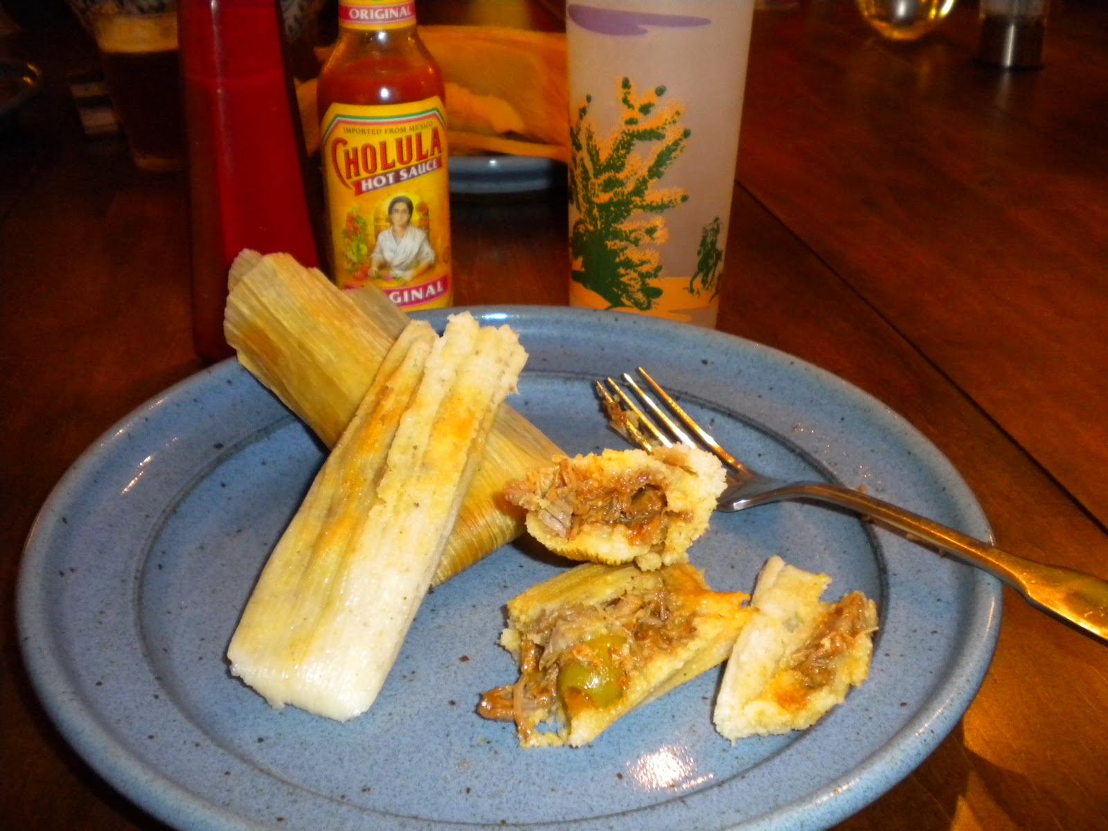 The Mexican tradition of tamales at Christmas has carried over into many homes in southern Arizona. My parents make their own in December, but we usually have them on the first time all of the family are in town; that usually means the night my brother arrives from NYC.