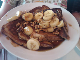 They were serving breakfast all day on Sunday. Our selections included an omelet, a “light breakfast,” a Cuban sandwich, and the dish that drew the most attention – a generous serving a French Toast topped off with sliced banana and walnuts. My friend, Julie, always does like to start her day with a little fresh fruit!