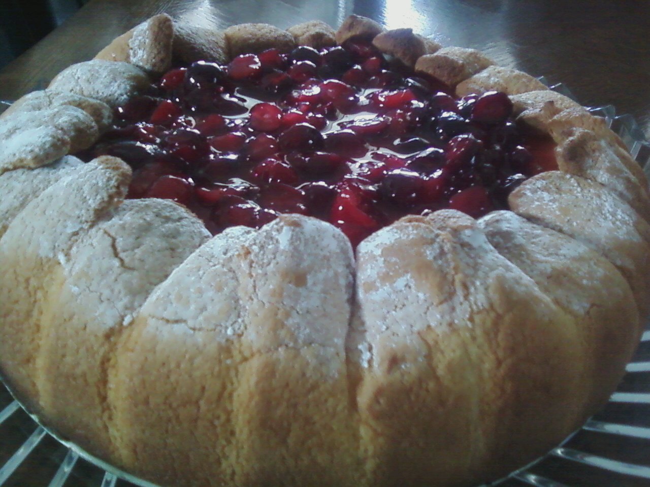 I made this cake a week ago Thursday. My friend, Linda, took it to the Interfaith Community Services (my favorite charity) staff Christmas party, and I understand that it was well received. I left the ladyfingers a bit too long, so they really wrapped around the filing. After I’d delivered the cake, I wished that I’d piped whipped cream along the overhang.