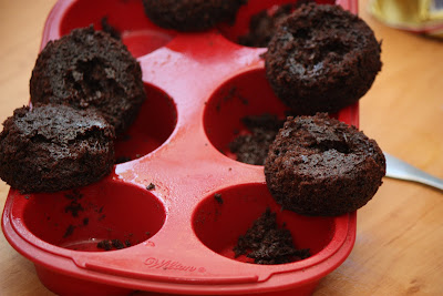 The texture of my ganache was probably off, but I don’t feel compelled to try it again. White frosting next time for these delicious little cakes.