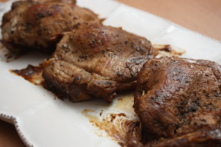 We had a package of pork chops rather than a pork loin roast, so our first attempt was a little different than the original recipe, but I can tell you that the flavors go together so very well.  Americans should follow the European example and cook meat with fruit more often, but first, we’ll have to grow up and forget all of the prune jokes.  The longest conversation I’ve had on facebook was when our niece and my brother harassed me for filling macarons with a prune ganache.   Back to the recipe at hand, after removing the meat, I used our immersion blender on the cooking broth and plums left behind to get a thicker sauce; Ed really liked the sauce – great flavor.