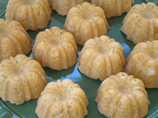 Before I started and not knowing if I’d have “leftovers,” I asked my daughter, who’s home for a few days from college, if I should make a double recipe. When she learned the cake wasn’t chocolate and there was no frosting, she said not to bother, but she came around. The recipe filled my twelve mini-bundts, and 5 in a mini-muffin pan, and she gladly helped me finish off the frosting-free, mini-cupcakes.