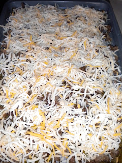 You’ll notice in the step by step photos, that I was making this from memory since I added the cheese before the eggs. Because of this, it seemed like the eggs weren’t going to cover the whole pan, but they moved, expanded, and filled in the gaps like magic. I only used 1 lb. of cheese, Sargento’s Reduced Fat 4 Cheese Mexican blend, but I did add the hot sausage!