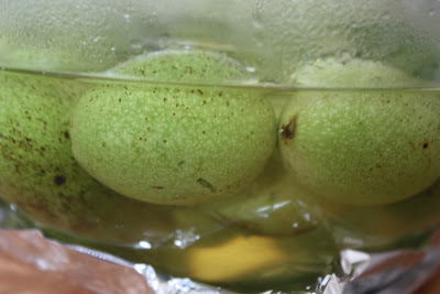 I’ve followed the directions to start a batch of the Polish family recipe. Rather than make a huge batch of this liqueur, because we’re moving back to the states in 6 months, I decided to search the Internet to what else people do with green walnuts.