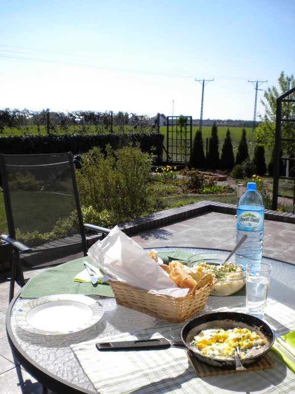 | Our al fresco lunch in Elżbieta’s garden consisted of scrambled eggs with chive and fresh mix salad. |