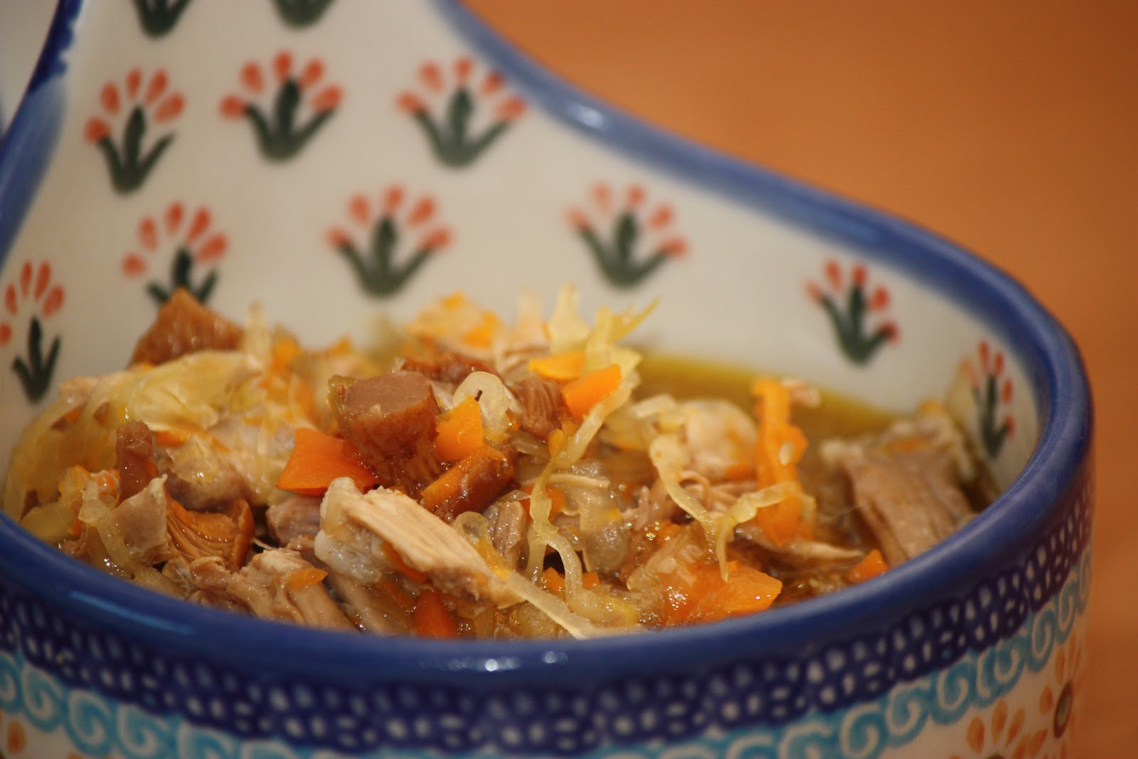 A traditional soup of preserved cabbage (sauerkraut), mushrooms, and rib meat!