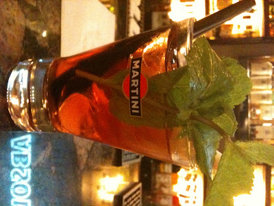 Curious about the bottle and thinking it might be Aperol,  we asked to see the Martini Rosato,  Our bartender offered up a sample and said he like to serve it with apple slices and a spring of mint.  This is a little different than the recipes offered on the Martini website, but let me tell you it is fantastic.  The aroma of the mint becomes such a strong part of the flavor.  It’s light and refreshing; definitely worth getting a bottle to try other combinations at home.  Rosato with club soda or prosecco, or cranberry juice.