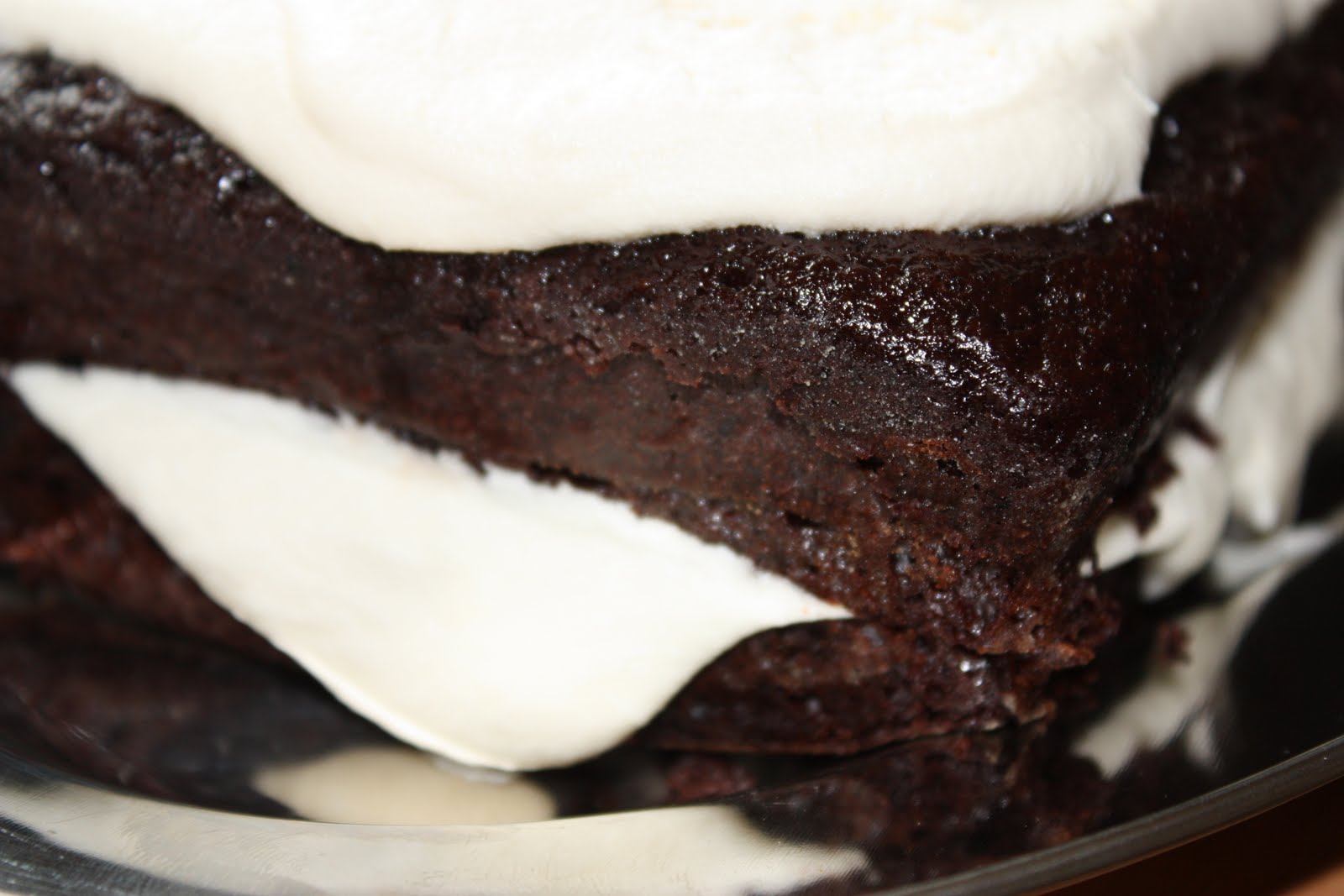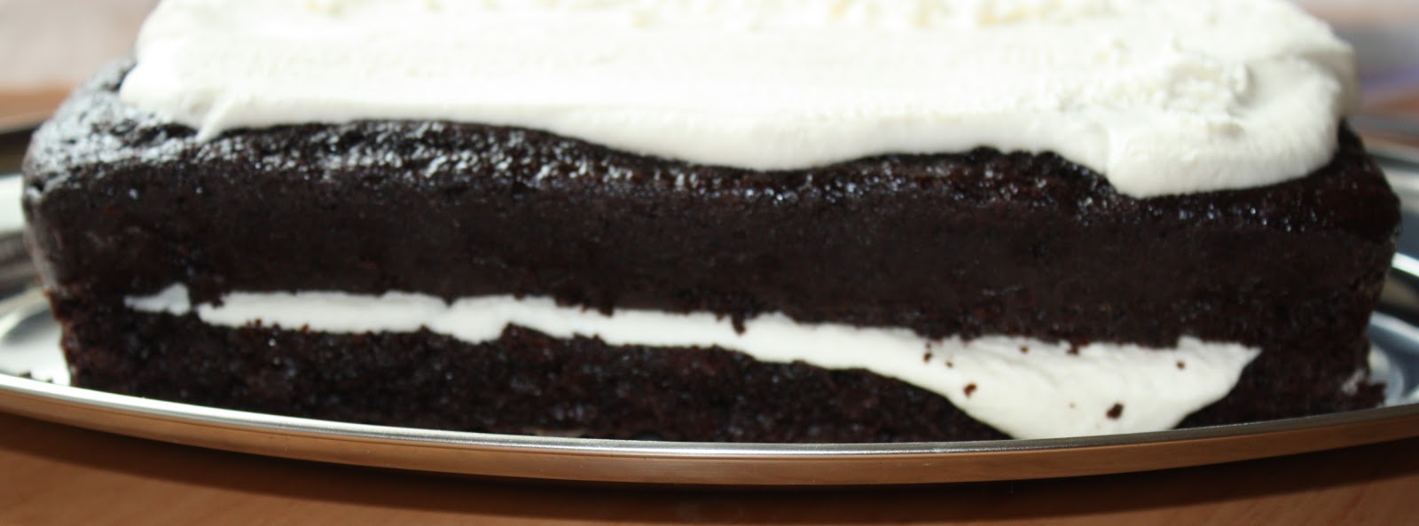 I have always loved Rose’s photo of this cake; the presentation is awe inspiring. The ruffled piping that seamlessly blends to become part of the perfectly smooth frosting. My mousseline didn’t get there volume and texture-wise, but that’s OK. ( I may have to breakdown and buy a mixer, but it won’t be a KitchenAid; they run over $700 here.) The flavor of the mousseline was still delicious even if it wasn’t so pretty to look at, and this is without a doubt the best chocolate cake in this cookbook. Let me tell you about it.