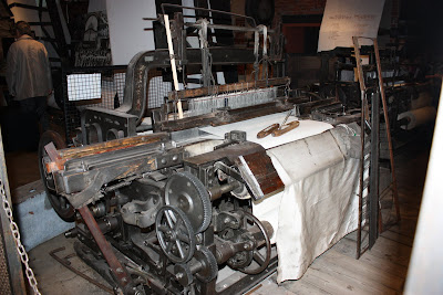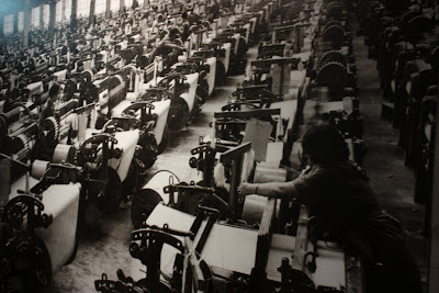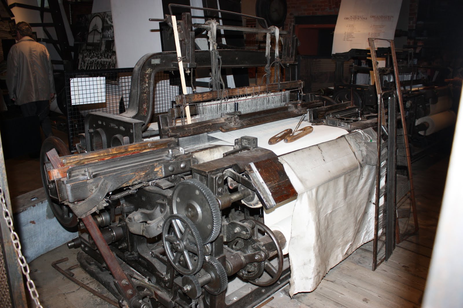 The museum is very visitor friendly, and includes some hands on activities for children. Photography is encouraged. There was a group on school kids on a tour, and the docent started up on of the looms for them. Can you imagine what the noise would have been like with the hundreds on machines running in the photo at the top of this post?