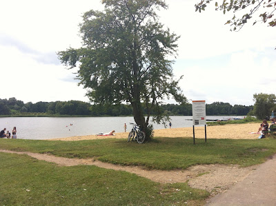 | The beach at mermaid lake. Â We did three laps around this lake, enjoying a hot dog after the first |