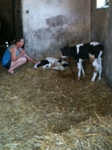 Later, we rode bikes to a dairy farm in a neighboring village.  We saw their 3-day old twin calves.