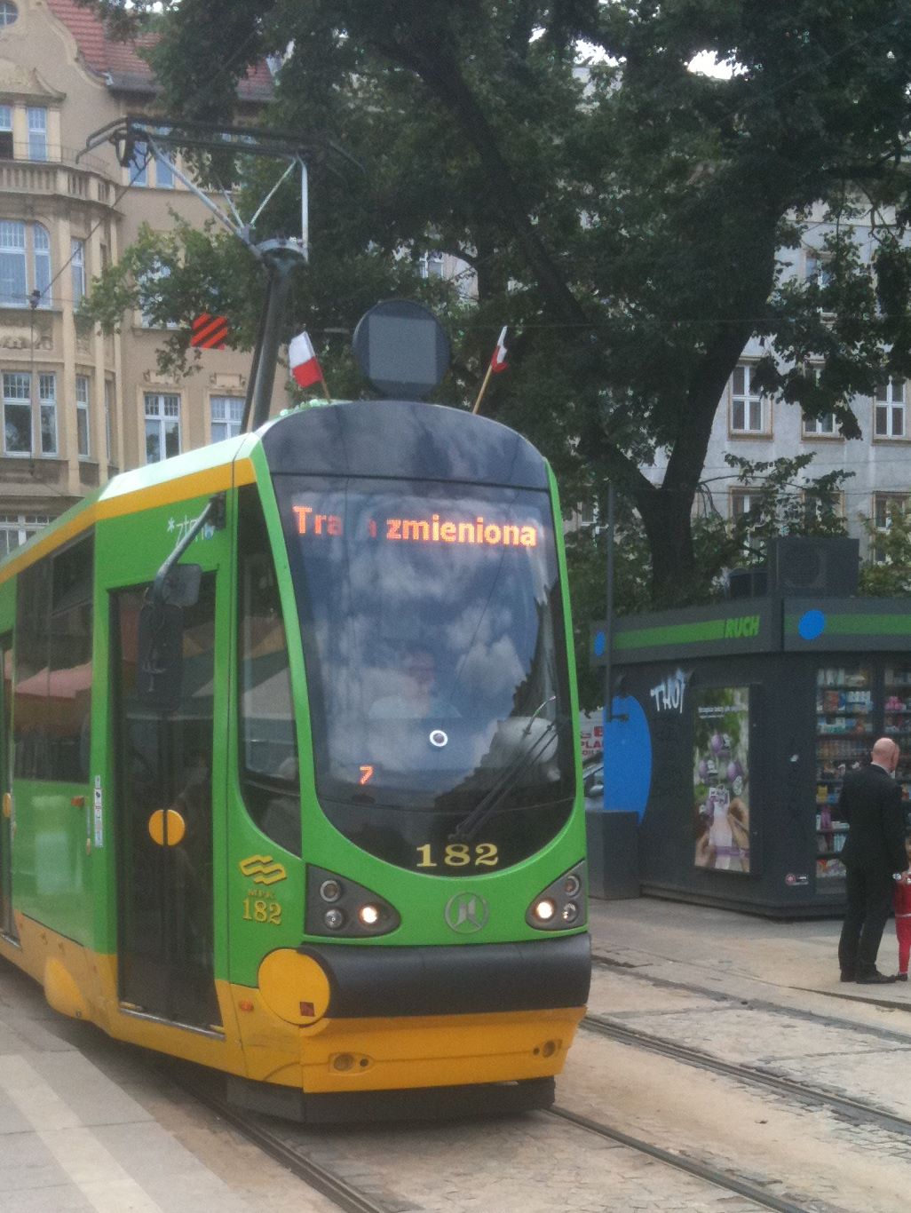 | All of the trams and buses were sporting Polish flags |