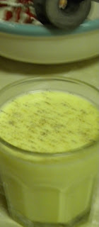 A little eggnog for the cook before starting cake number two. ; )