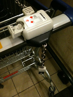 You’ll notice that this shopping cart or buggy, is chained to the line of carts in front of it. To release it from the cart queue, you slip a one złoty coin into the contraption on the handle, and the chain disengages. After you’ve finished shopping and your cart has been returned and reconnected to the queue, the coin is returned to you – much like a luggage cart at airports.
