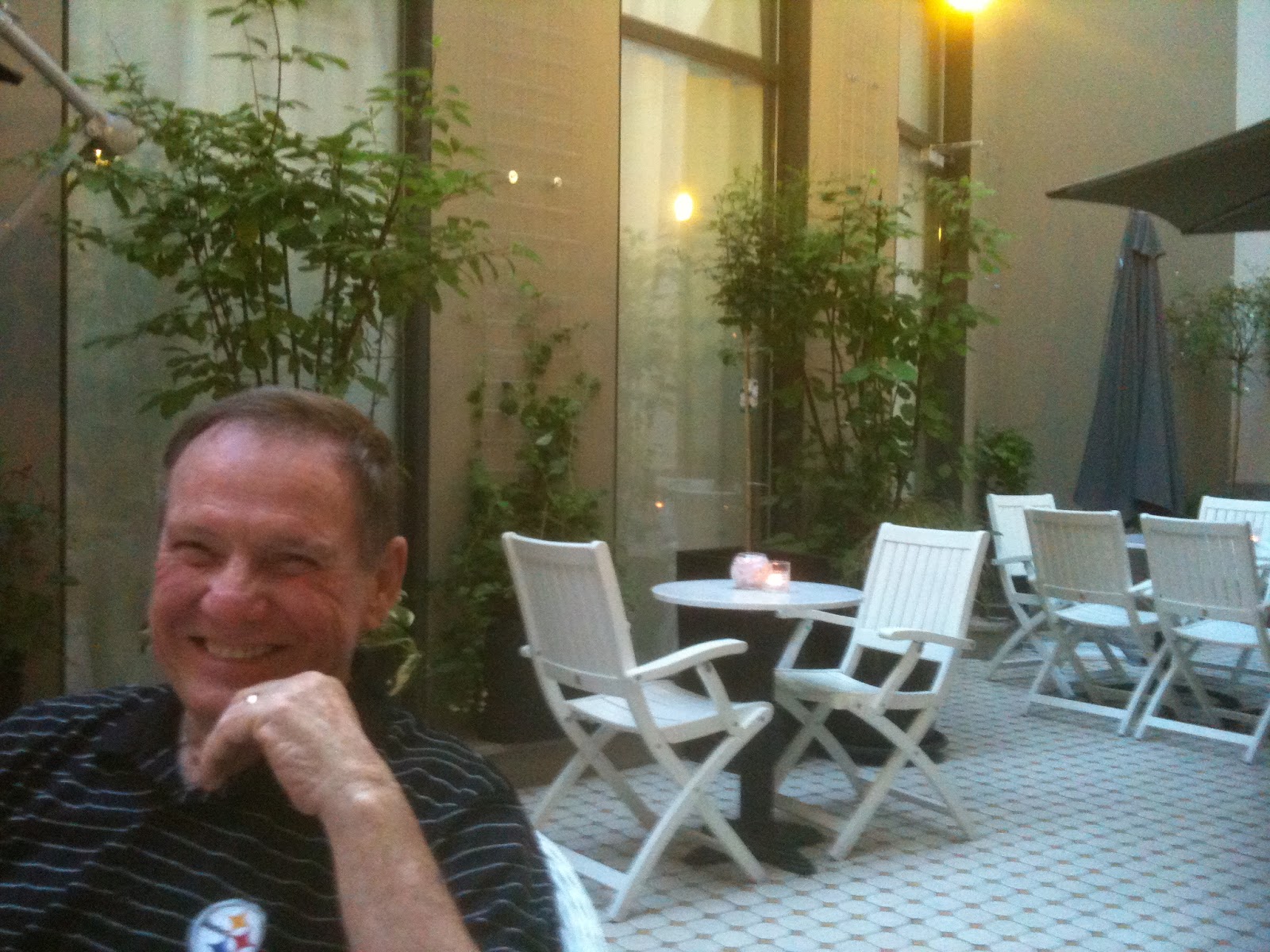 We both had starters, a salad for me, a soup for Ed. I had planned on a braised meat (beef, I think), mainly because I was intrigued by the side, carrots cooked with anise and other interesting things. Our waiter strongly urged me to try a steak that may have been the special that night, promising me that it would be much better. My first response was to think, he’s been in the kitchen and must know what he’s talking about, but we’ve been watching a lot of BBC lately with Gordon Ramsey going in to fix restaurants. I can hear Gordon telling the wait staff to push a dish, for reasons other than it’s the best. He’s made me a cynic.