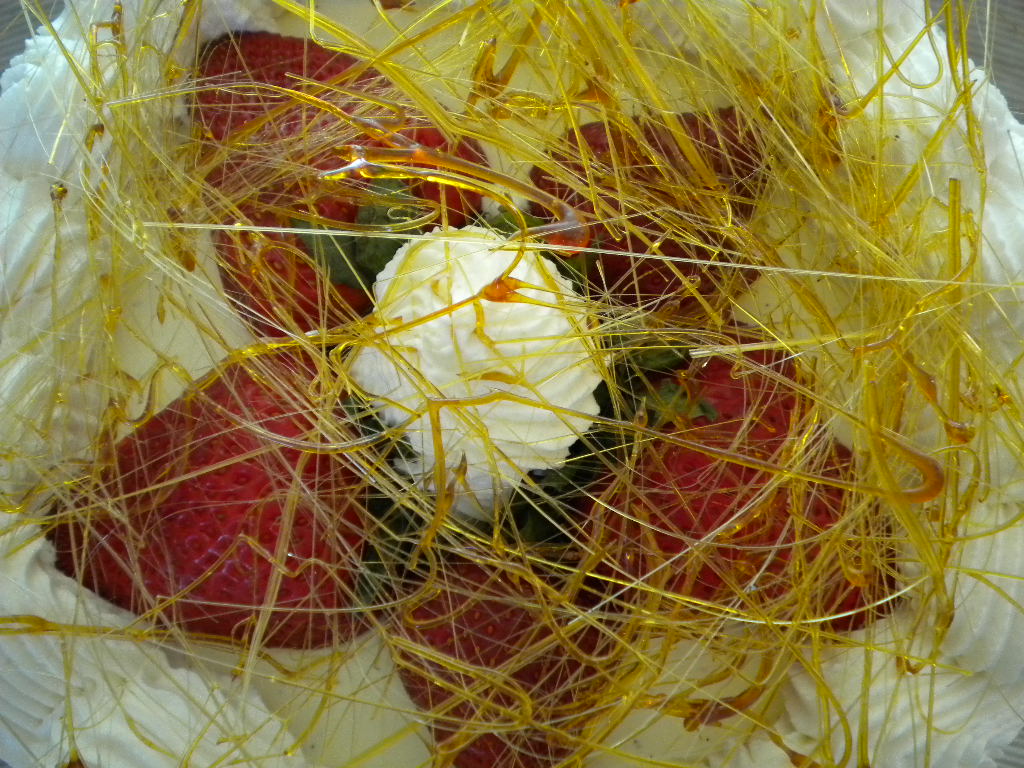 What bad hair day??.. that spun sugar looks great to me! And like Jenn, the piping looks soo good and the front pictures looks great! Mine is in the refrigerator waiting for the final whip cream topping and the sugar… but based on all the feedback its going to taste great – I cannot wait!