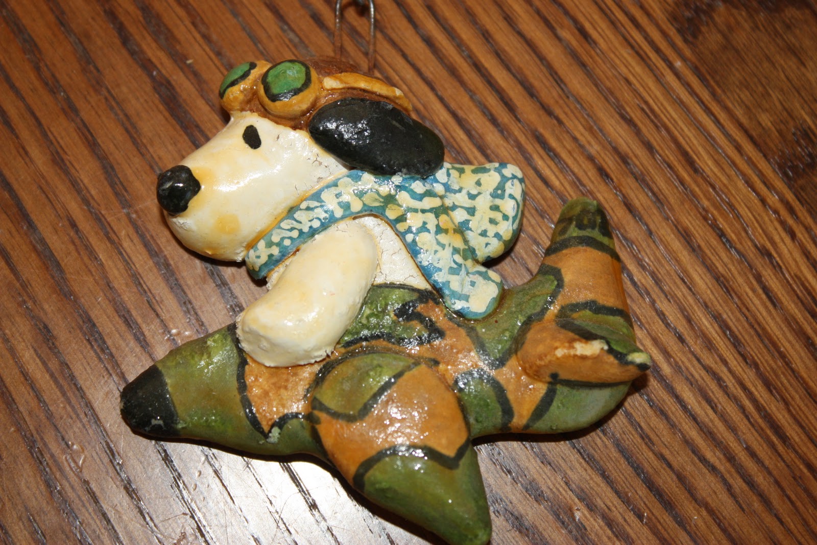 | My first ornament – Snoopy flying an F-4 wearing the squadron’s blue & white gingham scarf |