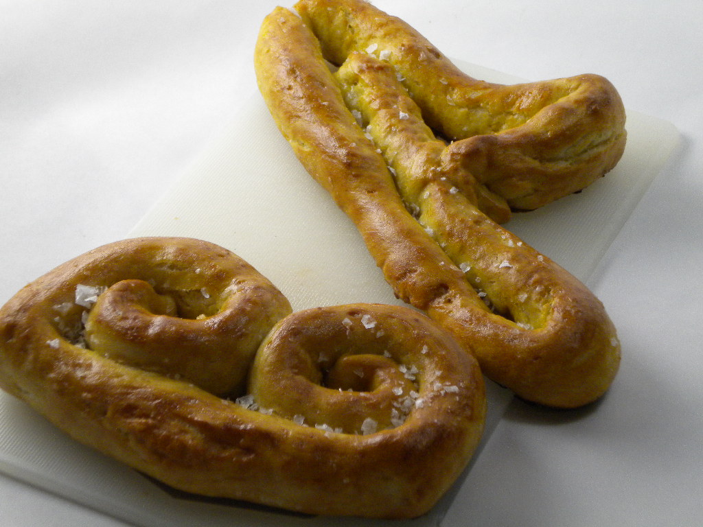 - Shape into 6 pretzels, and dip into the baking soda solution.