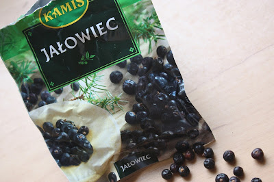 Knowing that they’re considered a spice, I put juniper berries into the translator app on my phone – jagody jałowca. I came up empty handed at Piotr i Pawel, so I tried the Alma at Stary Browar and found a packet of jałowiec, which translates to juniper. There are so many suffixes for Polish words, that usually if the first three or four letters are the same, I consider it a match, but many of you know that I’ve had a few mix-ups in my market purchases.