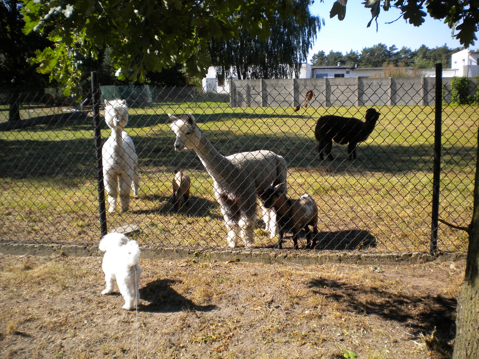 A field next to the hotel parking lot is home to three llamas and two pygmy goats. They were very interested in Benson. He was disappointed that they didn’t respond to his invitations to play.