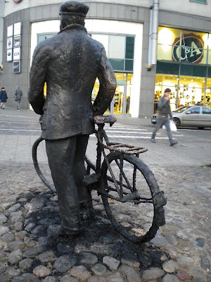 We got off the tram by the C & A yesterday and walked to Starbucks at Stary Bowar. As soon as we came to the statue of Old Marych, we both noticed the afghan was gone. Then we became aware of the faint burnt smell and the black ashes around the bottom of the statue. My first reaction was one of shock. Had vandals done this? After thinking about it for a few minutes, I suspect this was part of the artist’s plan. It certainly makes more of a statement than letting it sit in the elements for months, slowing rotting away. We are, after all, talking about it twice rather than just once.